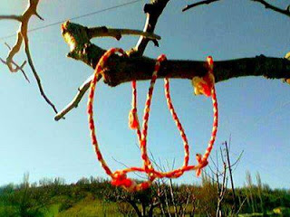 Την 1η Μαρτίου, ξημερώματα, οι Ριμένες της Παλαιομάνινας έστριβαν κόκκινες και λευκές κλωστές με τις οποίες έδεναν κυρίως το μεγάλο δάκτυλο του ποδιού («παλικάρου») και τα δάκτυλα και τους καρπούς των χεριών. Αυτές τις κλωστές τις έβγαζαν στο τέλος του μήνα ή όταν πρωτοέβλεπαν τα μάτια τους χελιδόνι ή πελαργό.