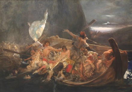 «ΤΟ ΛΟΥΛΟΥΔΙ ΤΗΣ ΕΛΛΑΔΟΣ» » του 1836 του Julius Ahiborn. Αυτός ο πίνακας από τον Ahiborn είναι ένα αντίγραφο του πρωτοτύπου από τον Karl Friedrich Schinkel που έχει χαθεί.Αυτή η παράσταση δείχνει τους Ελληνες στην κατασκευή ενός ναού ,τοποθετώντας το τελευταίο μπλοκ της ζωφόρου του . Η ελληνική επιγραφή κάτω αναφέρει ύμνο του Αριστοτέλη για τις αρετές της μάχης. Αυτό το αριστούργημα βρίσκεται στην Alte Nationalgalerie, Staatliche Museen zu Berlin.